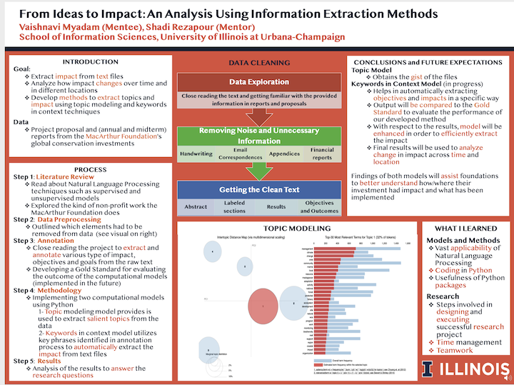 The goal of this research project was to extract impact, meaning the objectives or results of a certain project, from text and analyze how this impact changes over time and in different locations. The text used in this project comes from multiple types of data such as project proposals, midterm reports, annual reports, and final reports of the MacArthur Foundation's global conservation investments. The scanned files given by the Foundation were converted to text files using the Python PyPDF2 library.
